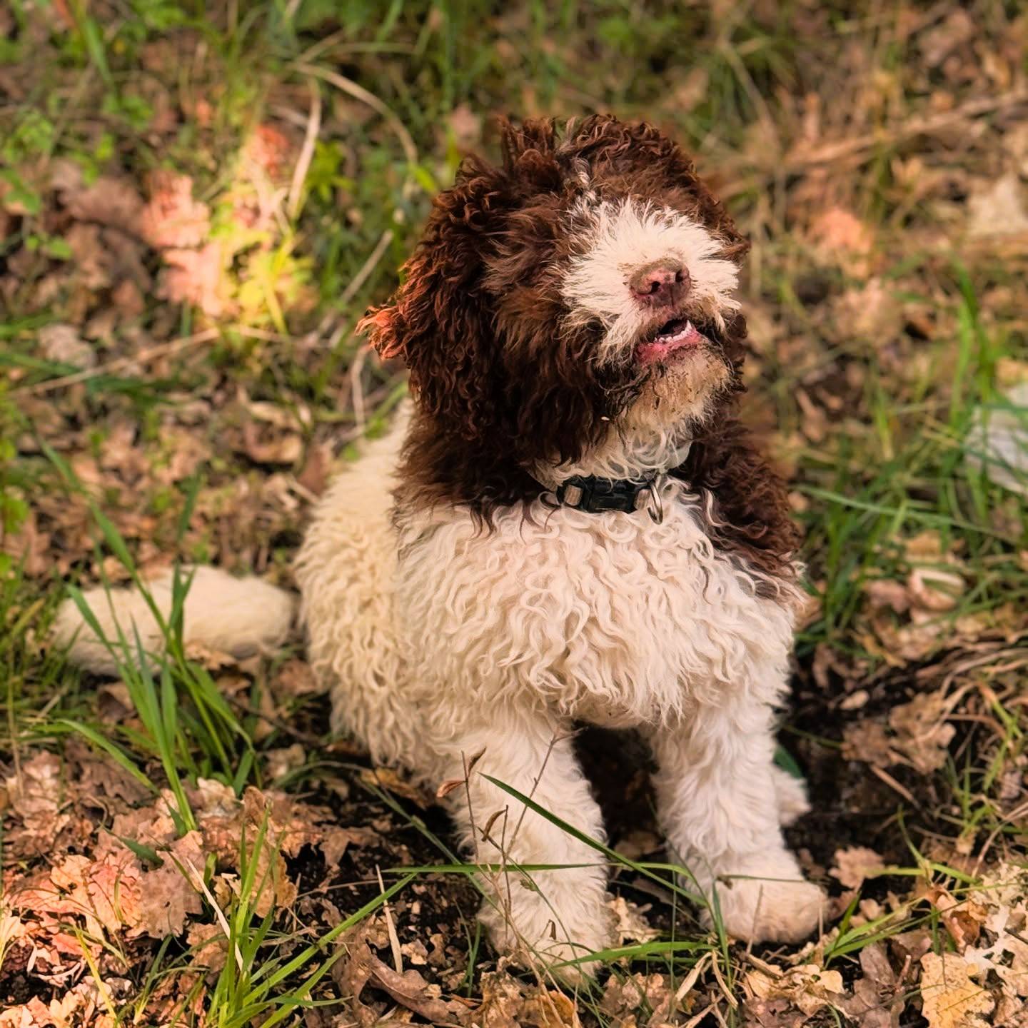 Among the most appreciated breeds is the Lagotto Romagnolo, considered the best truffle dog in the world for its genetics, aptitude, and olfactory sensitivity. This Italian breed, affectionate and cooperative by nature, has an extraordinarily keen nose and a natural talent for underground search.