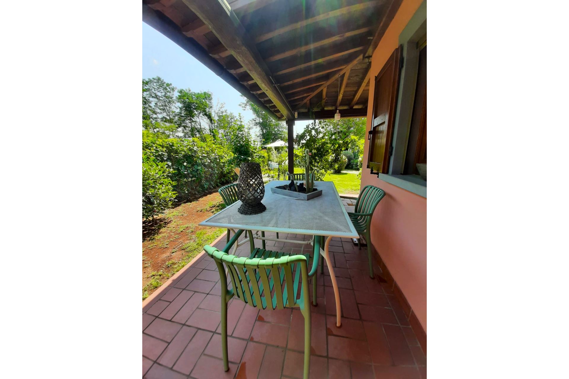 Outside, you will find a well-kept, fully enclosed green garden, ideal for those travelling with pets, along with a charming porch equipped with a table, chairs and a small sofa, perfect for al fresco dining, relaxing moments and evenings with friends.