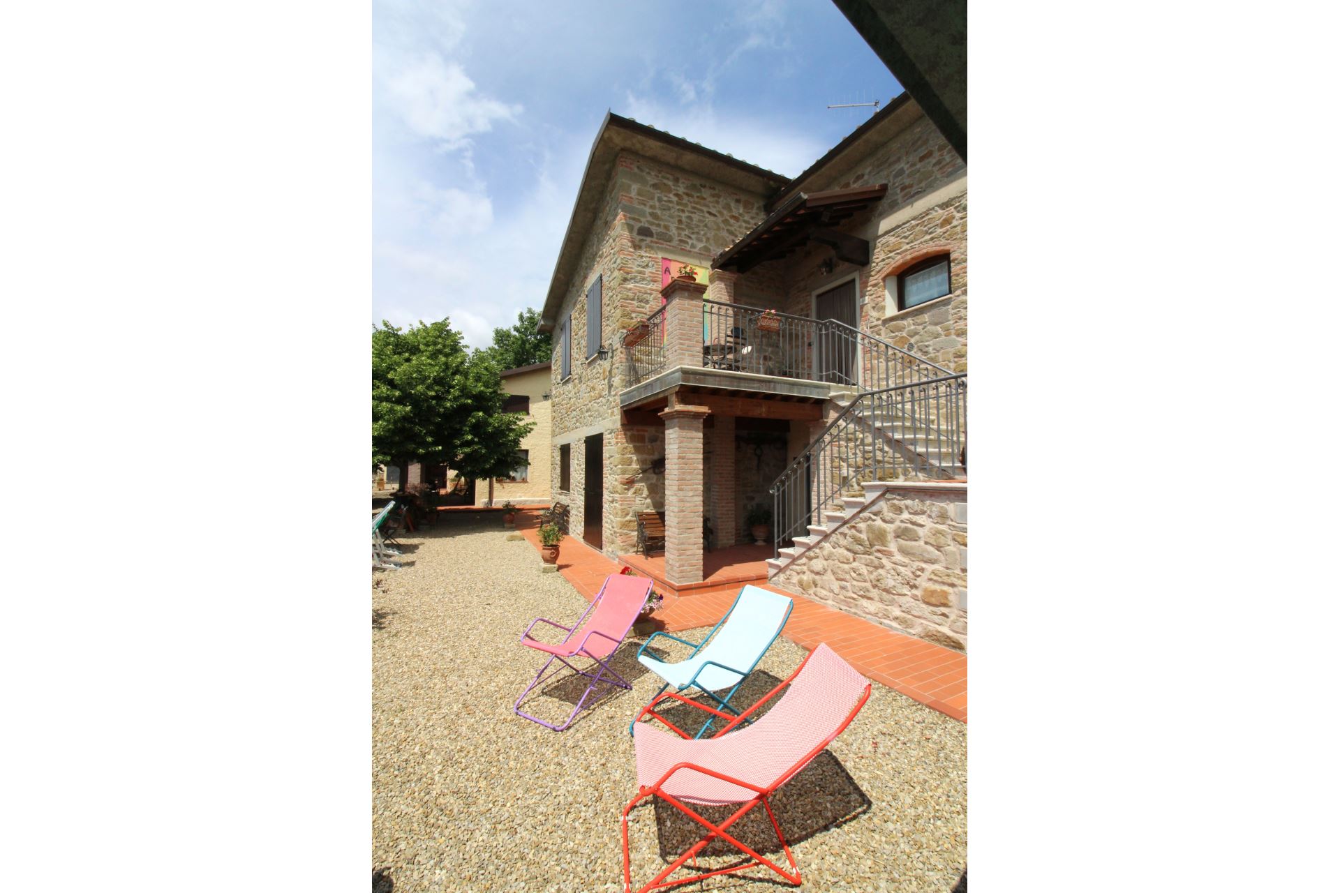 The house is located on the slopes of Pratomagno, which stands out from the Arno valley and descends with wide natural terraces full of olive trees, until the road of the “Setteponti”, connecting the cities of Arezzo and Florence. The village of San Giustino Valdarno with restaurants, bars and shops is about 1 km away and can be easily reached on foot with an enchanting walk through vineyards and olive grow.