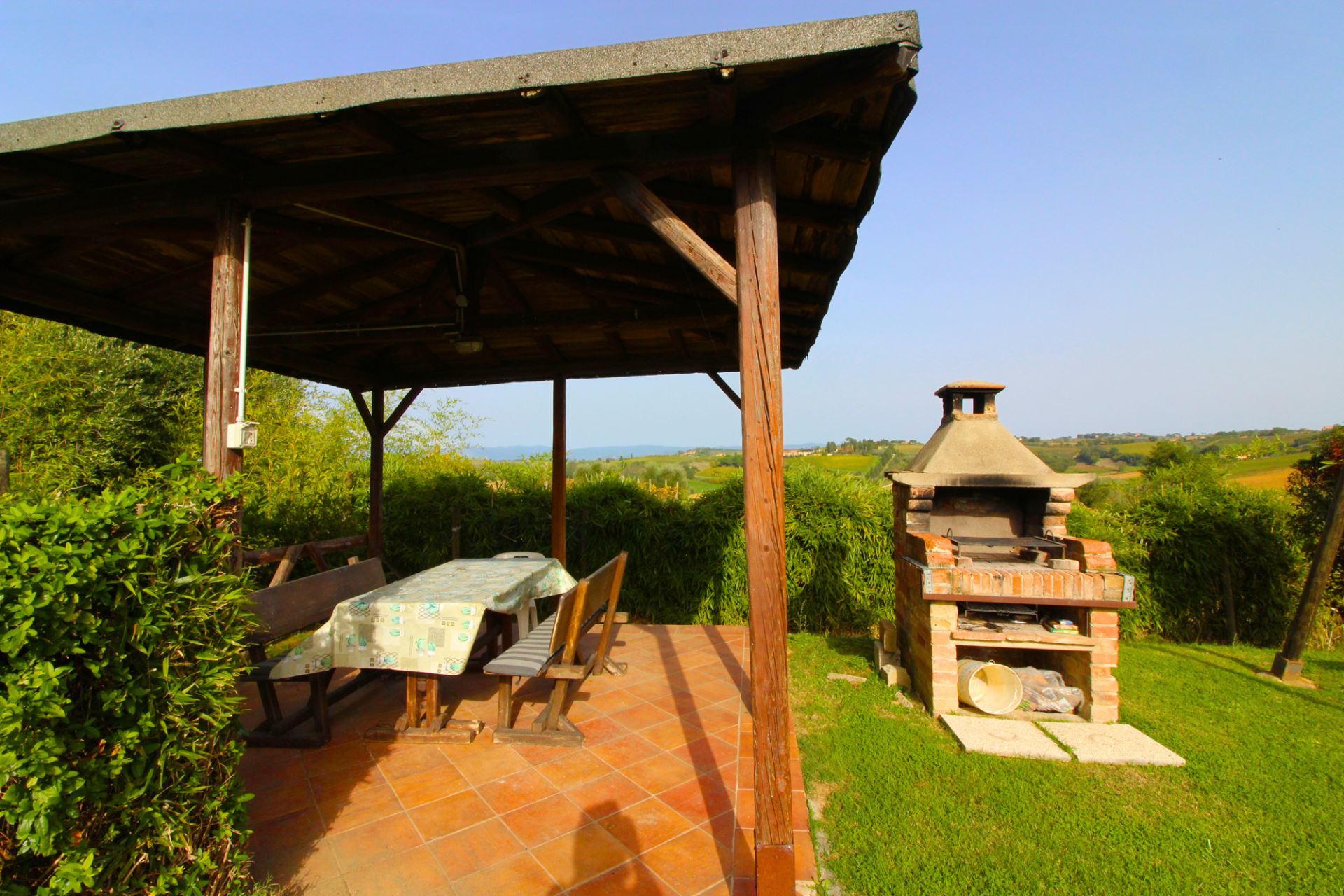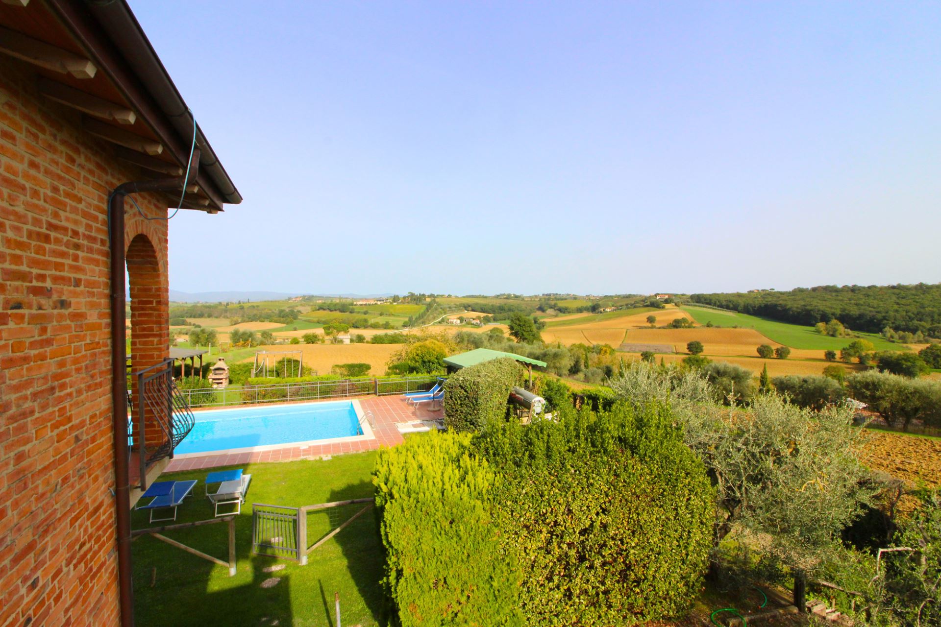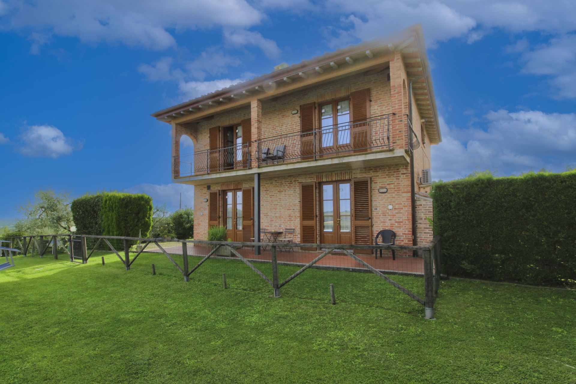The house, built in red brick following the Tuscan rural tradition, retains the authentic charm of old country homes, with simple yet welcoming interiors. The windows open onto a breathtaking hilly landscape that will captivate you every morning.