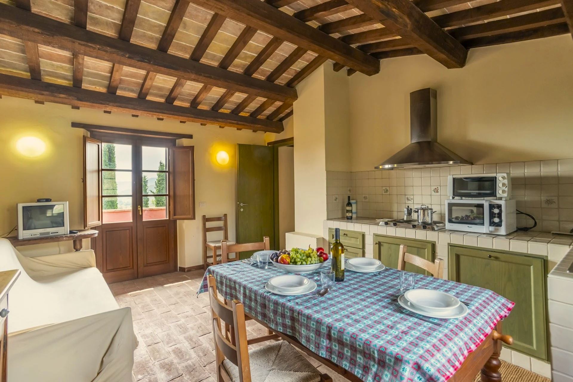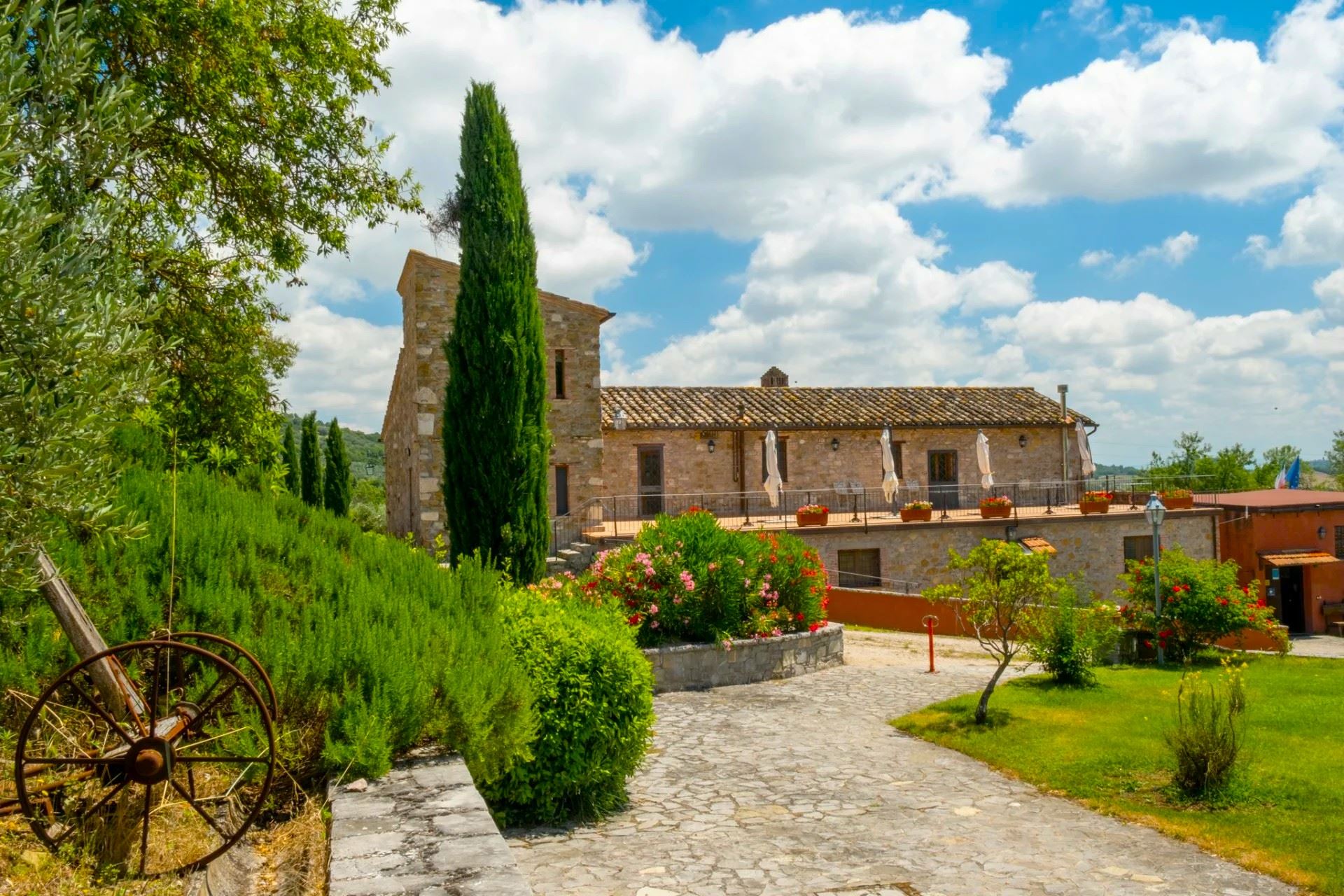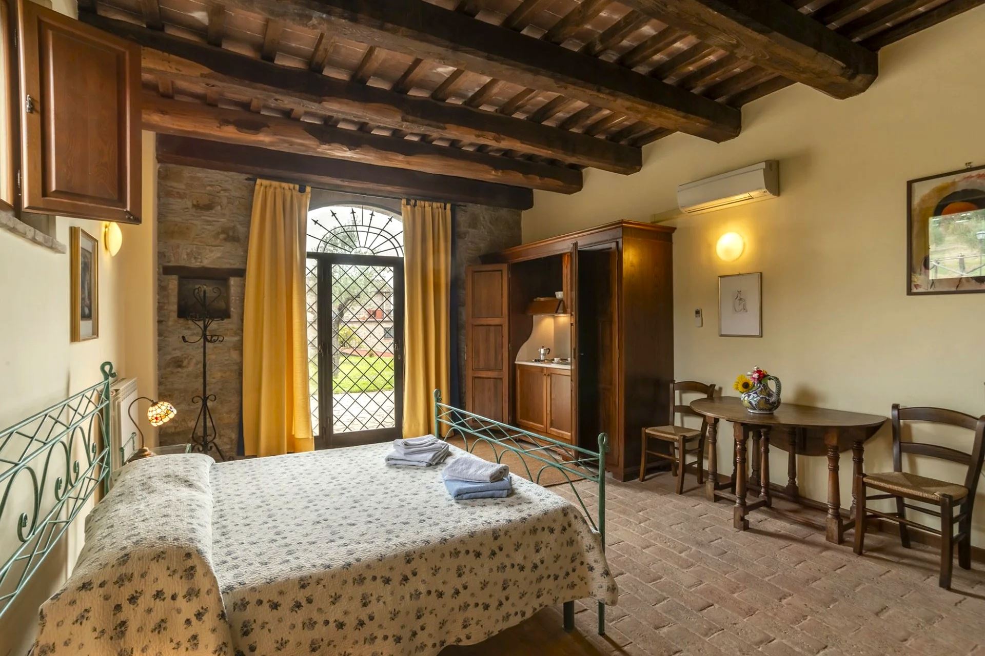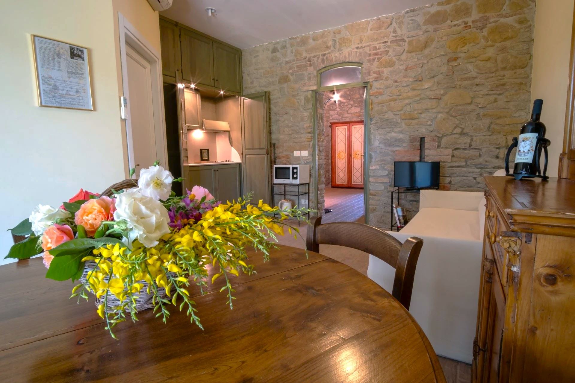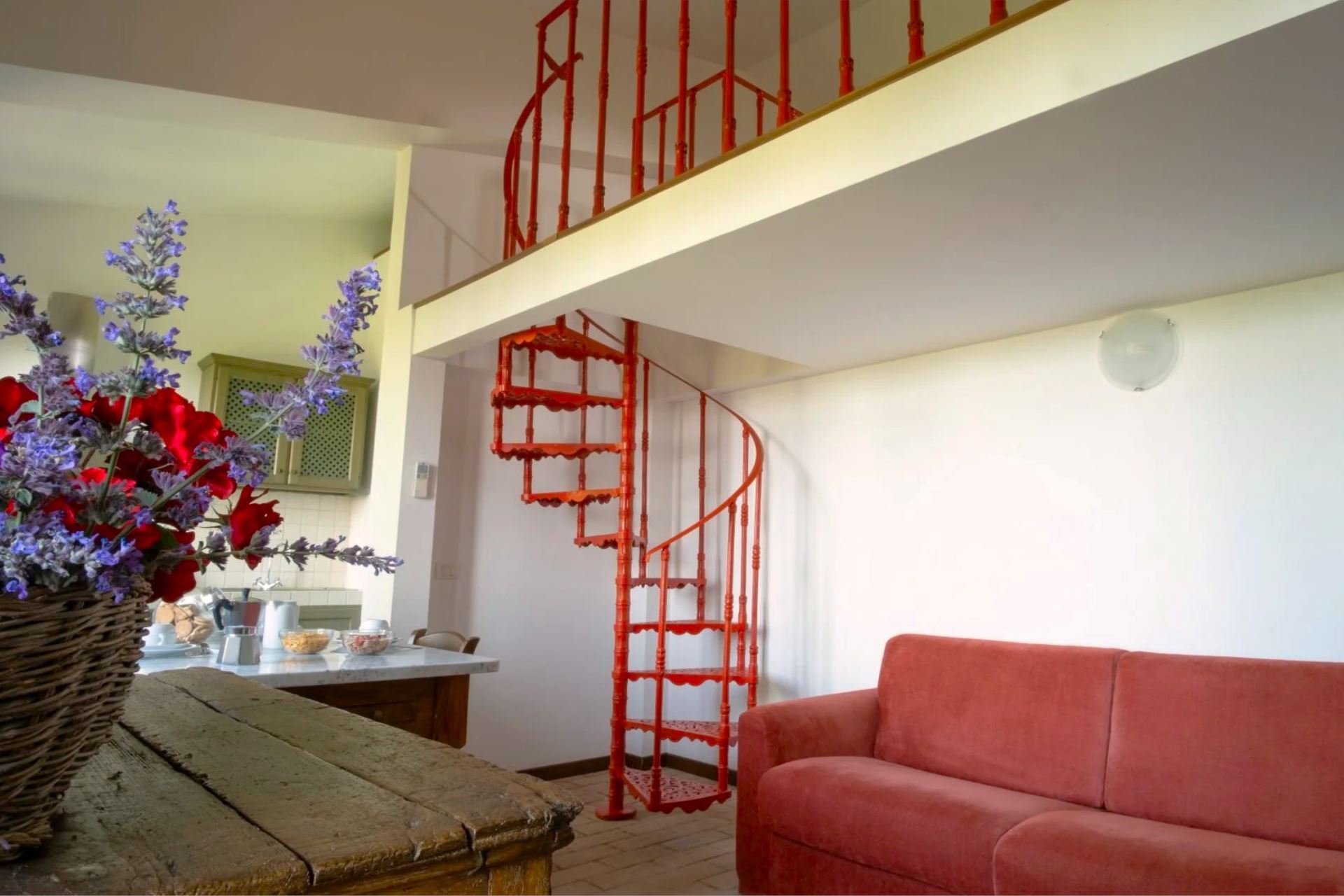 It consists of two large farmhouses, Villa Torre and Casale Agello, both divided into independent apartments with private entrances. The apartments, renovated while preserving their original charm, tell the story of the place through authentic architectural details and finishes. You will find spacious, bright accommodations, tastefully furnished and equipped with air conditioning, private entrance, and private outdoor space. The rustic yet elegant décor blends harmoniously with the traditional architecture revisited in a modern key, creating a unique atmosphere of tranquility and well-being.