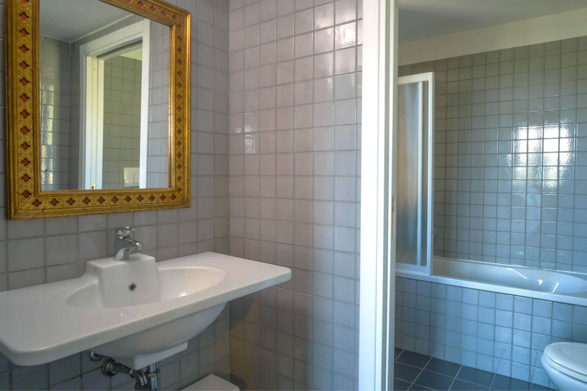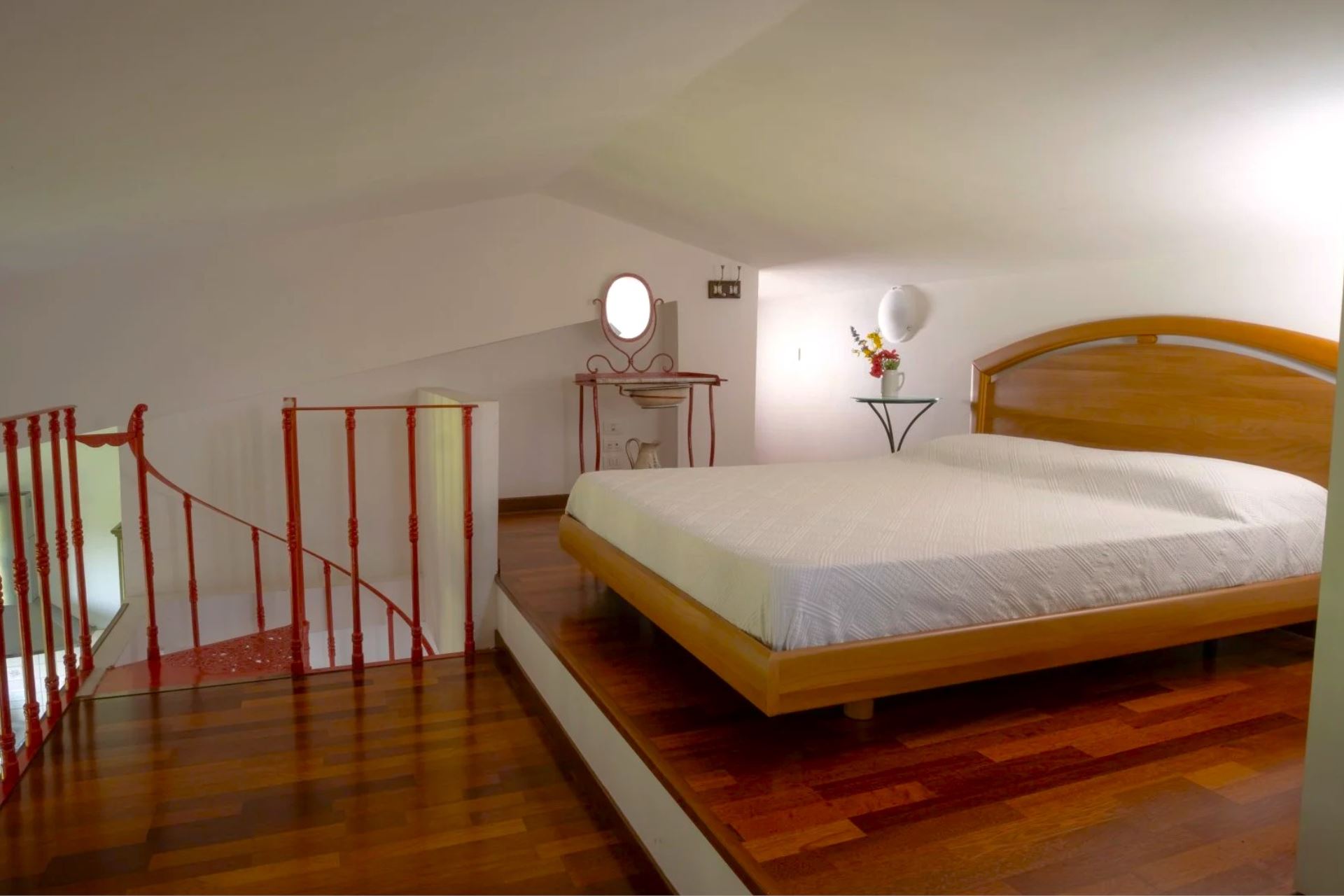 MONTALI: First-floor apartment with independent entrance via external staircase. Living/dining room with kitchenette, mezzanine with double bed, bathroom with bathtub, double bedroom and bathroom with shower.