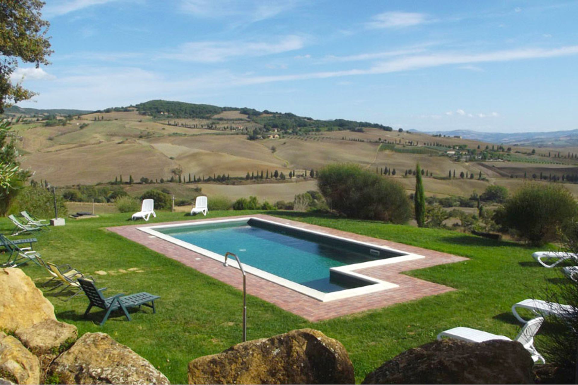 L'endroit le plus apprécié de la villa est sans aucun doute la zone de la piscine (dimensions 5x10 - profondeur 1,50 m, complètement fermée - ouvert du 01 Mai au 30 Septembre). D'ici, la vue sur le Val d'Orcia est 'incroyable. Des collines aux mouvements ondulants se perdent à perte de vue, les couleurs chaudes et reposantes des champs cultivés et des vignobles, une carte postale à tout moment de la journée et en toute saison. Dans le grand espace extérieur, vous trouverez également un barbecue, un four à bois et un kiosque caractéristique idéal pour manger al fresco devant le panorama.