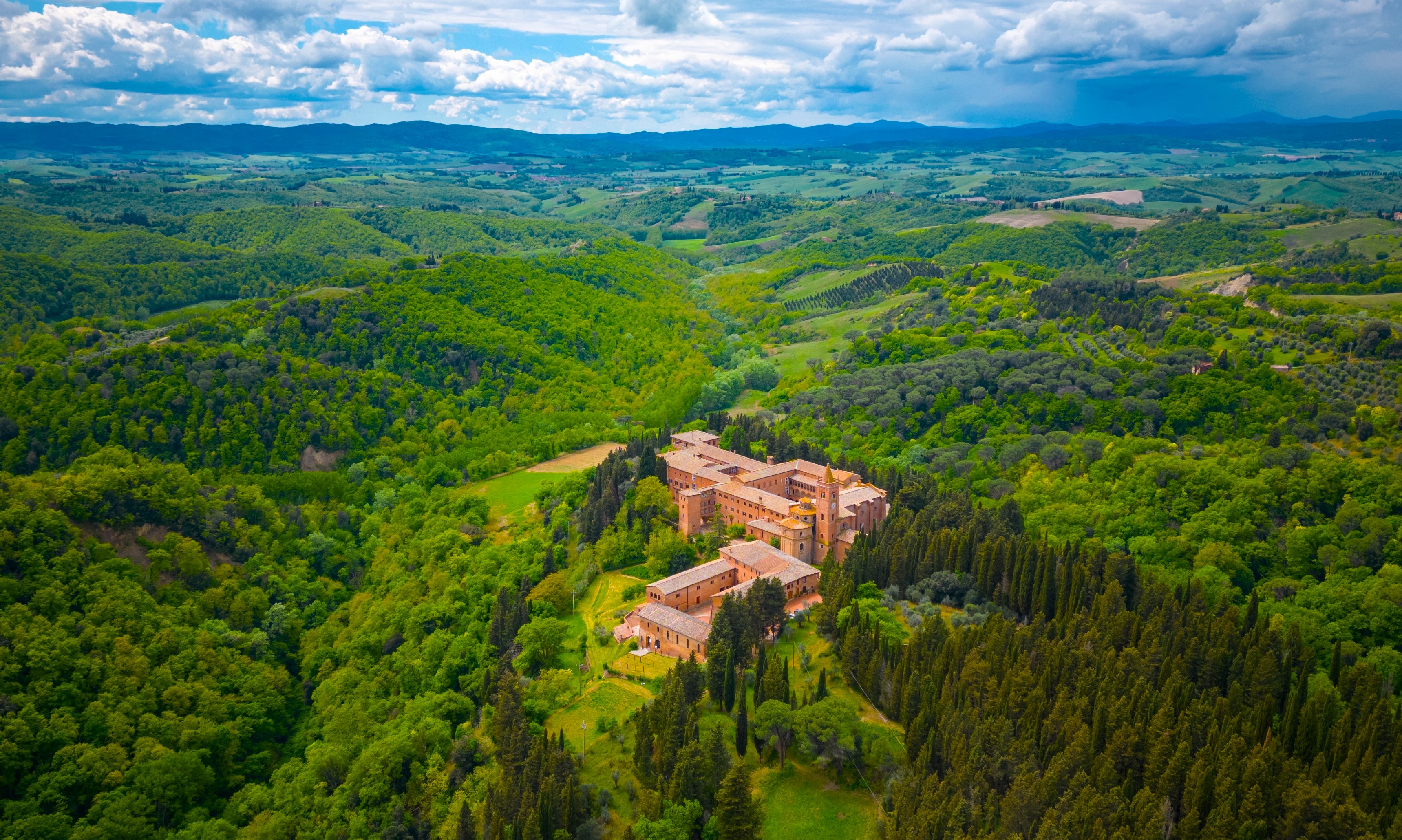 L'Abbazia di Monte Oliveto Maggiore è un luogo di straordinaria bellezza e spiritualità situato nel cuore delle Crete Senesi. Fondata nel 1313 da Bernardo Tolomei, l'abbazia è il principale monastero dell'ordine benedettino di Monte Oliveto e rappresenta un importante centro di cultura, arte e fede.