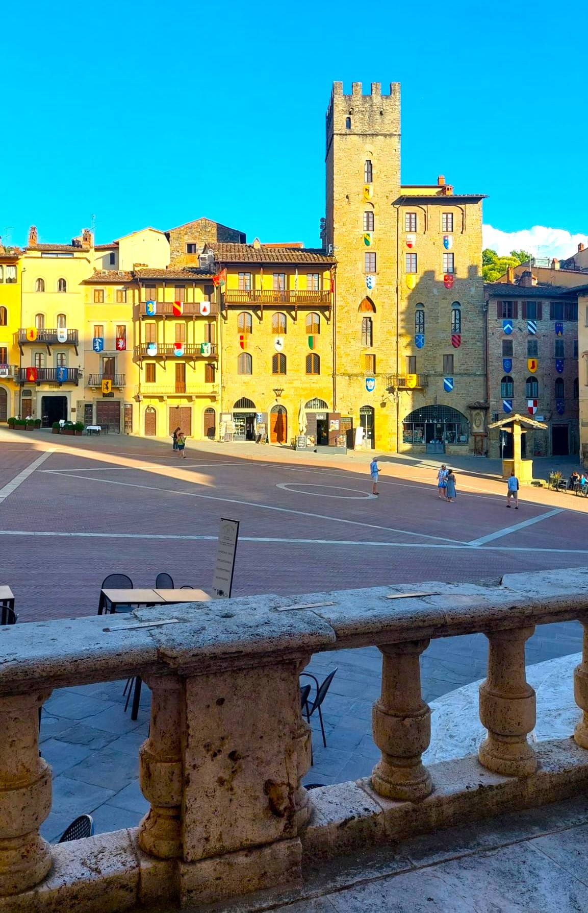 Iniziate la vostra passeggiata dalla maestosa Piazza Grande, il cuore del centro storico di Arezzo. Qui potete ammirare l'imponente Palazzo della Fraternita dei Laici e l’abside semicircolare della Chiesa di Santa Maria della Pieve. La piazza è circondata da edifici storici e dal Loggiato Vasariano, e offre un'atmosfera unica, teatro della Giostra del Saracino per due volte all’anno e fulcro delle riprese del film da Oscar di Roberto Benigni La vita è Bella.