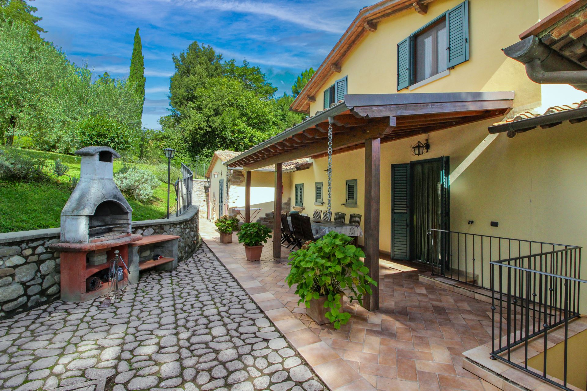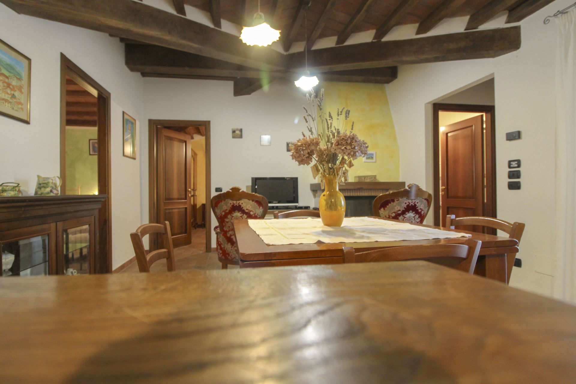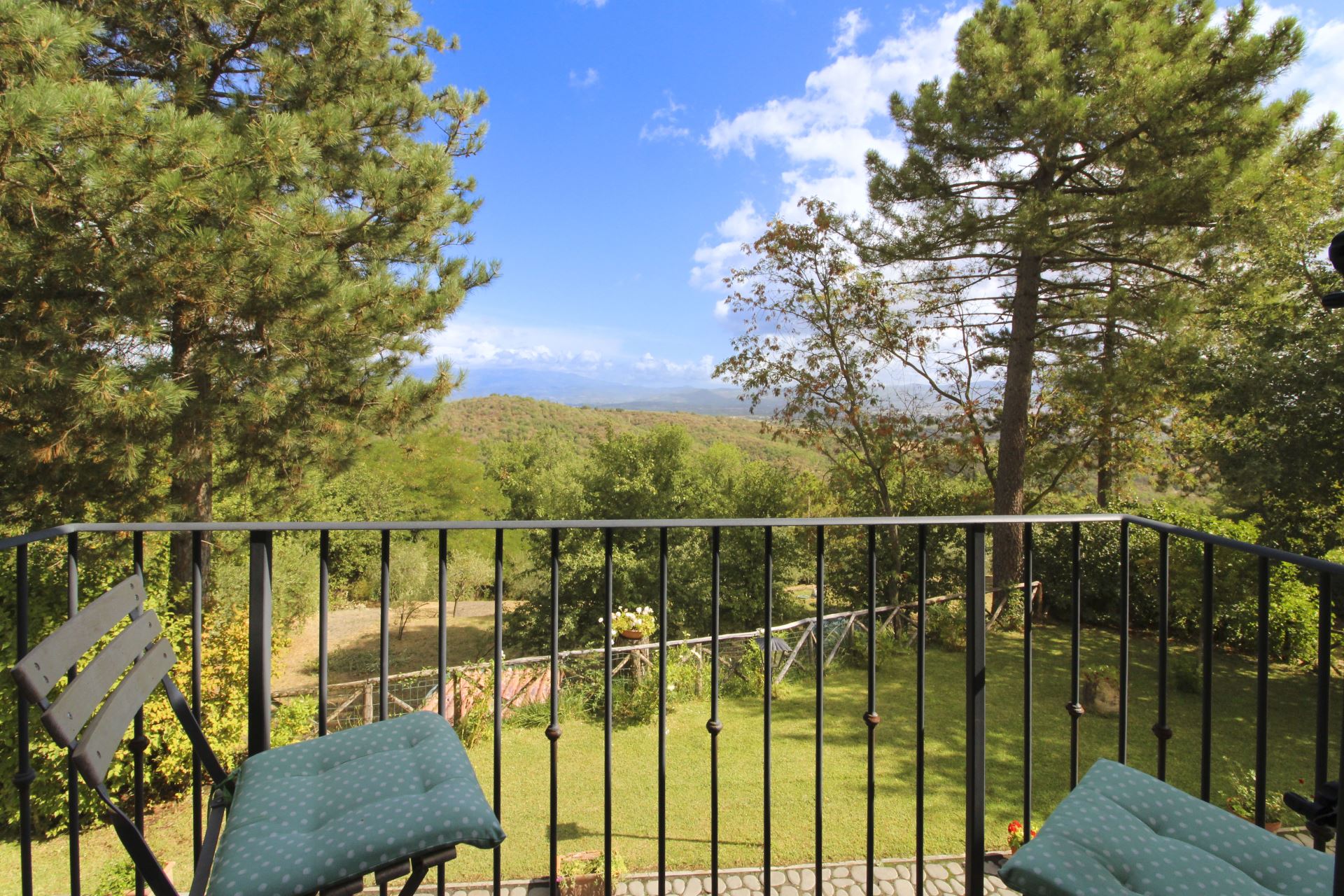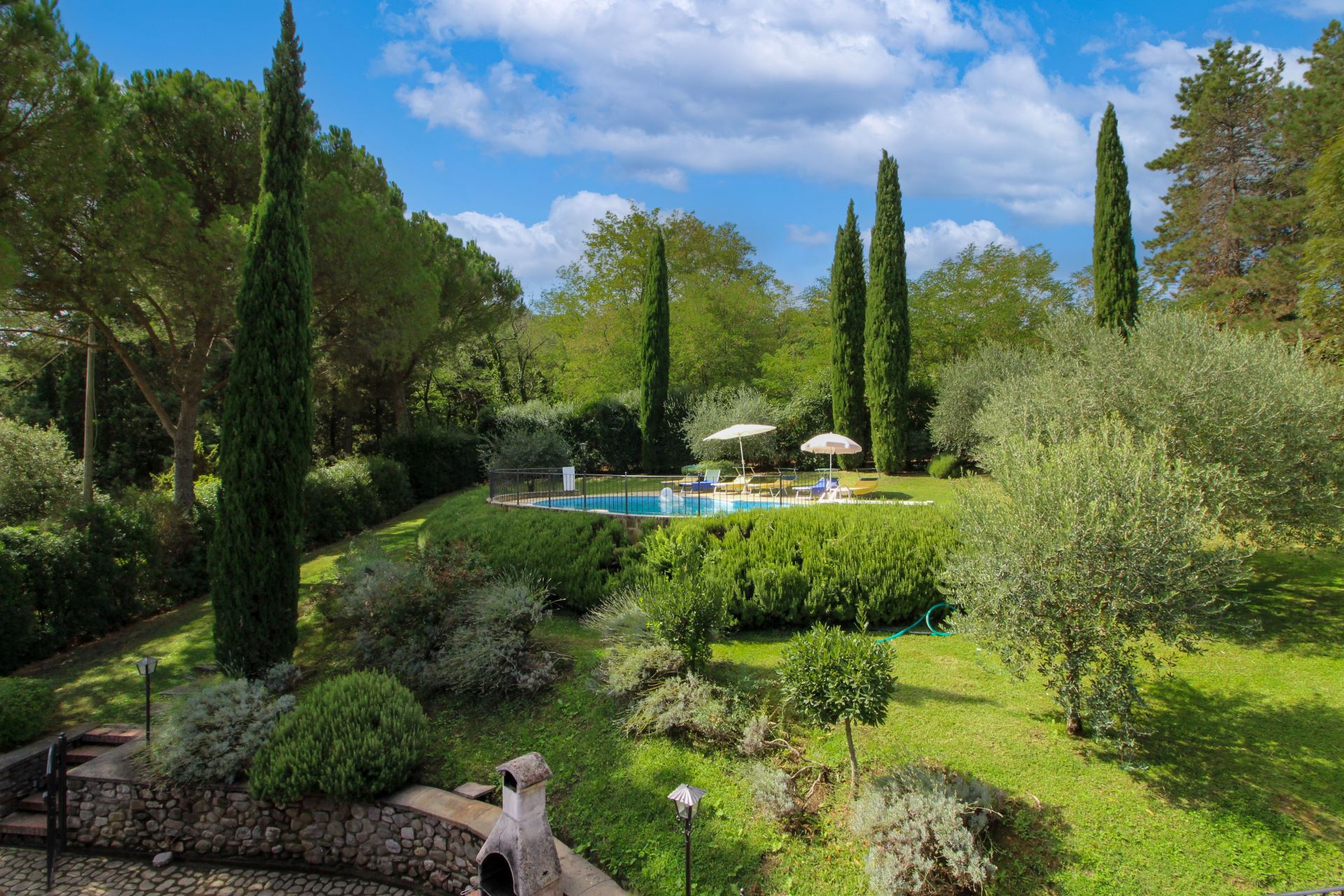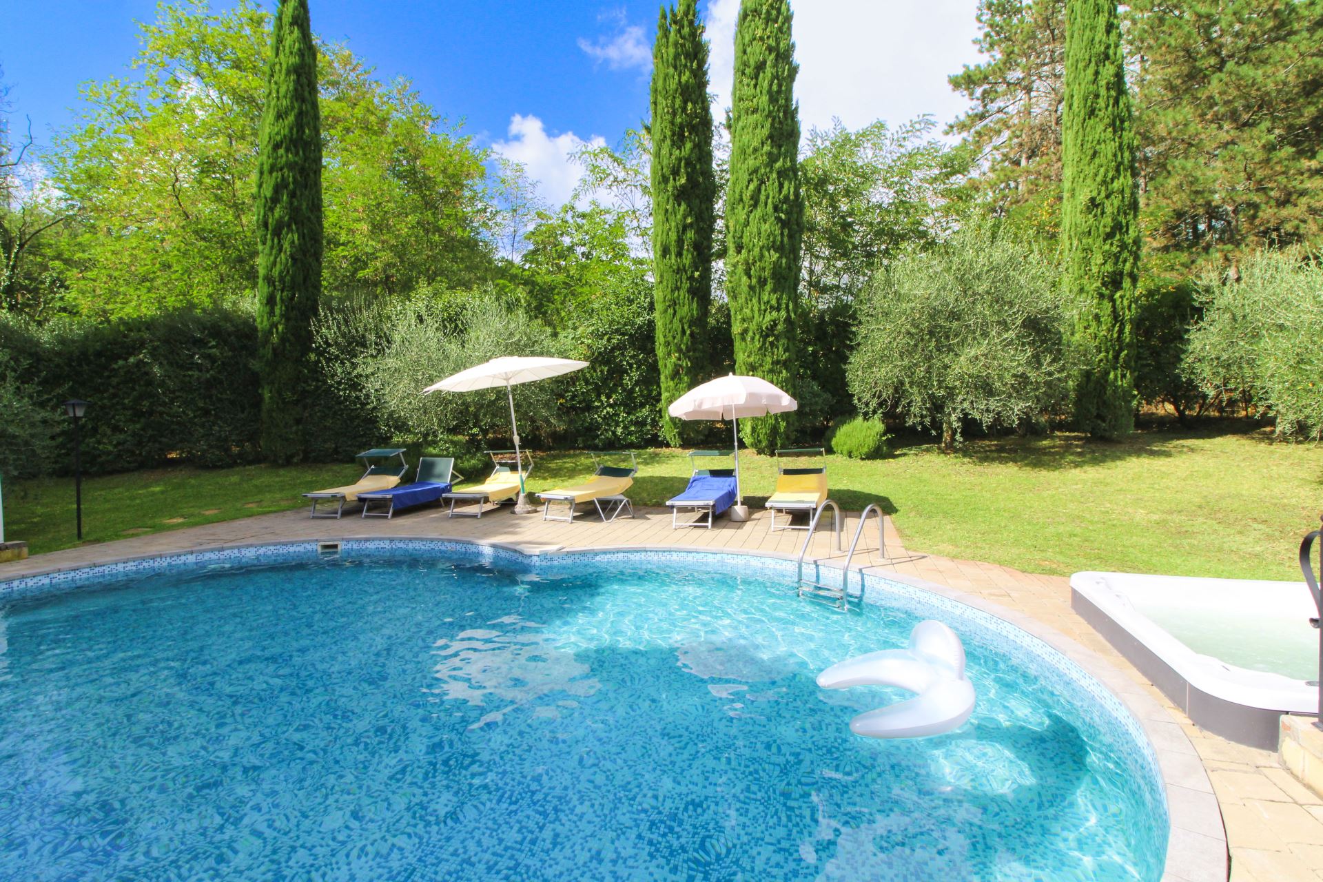 C'è qualcosa di speciale in questa bella proprietà situata sulle boscose colline che separano la valle della Chiana da quella dell'Arno, che per la sua posizione, gode anche di un facile accesso alle città di Arezzo, Firenze e Siena. Forse è il giardino curato e panoramico ombreggiato da alti pini e completamente recintato, la piscina privata (dimensioni 6 x 9 m. - profondità 1,20 m. - aperta dal 01 Maggio al 30 Settembre) o forse la vasca idromassaggio (6 posti - a pagamento) posta tra gli olivi...? Oppure, potrebbe essere l’idea stessa della villa di campagna, la sua posizione appartata ma non isolata, e la calda atmosfera creata all'interno con colori pastello e arredamento rustico in stile.