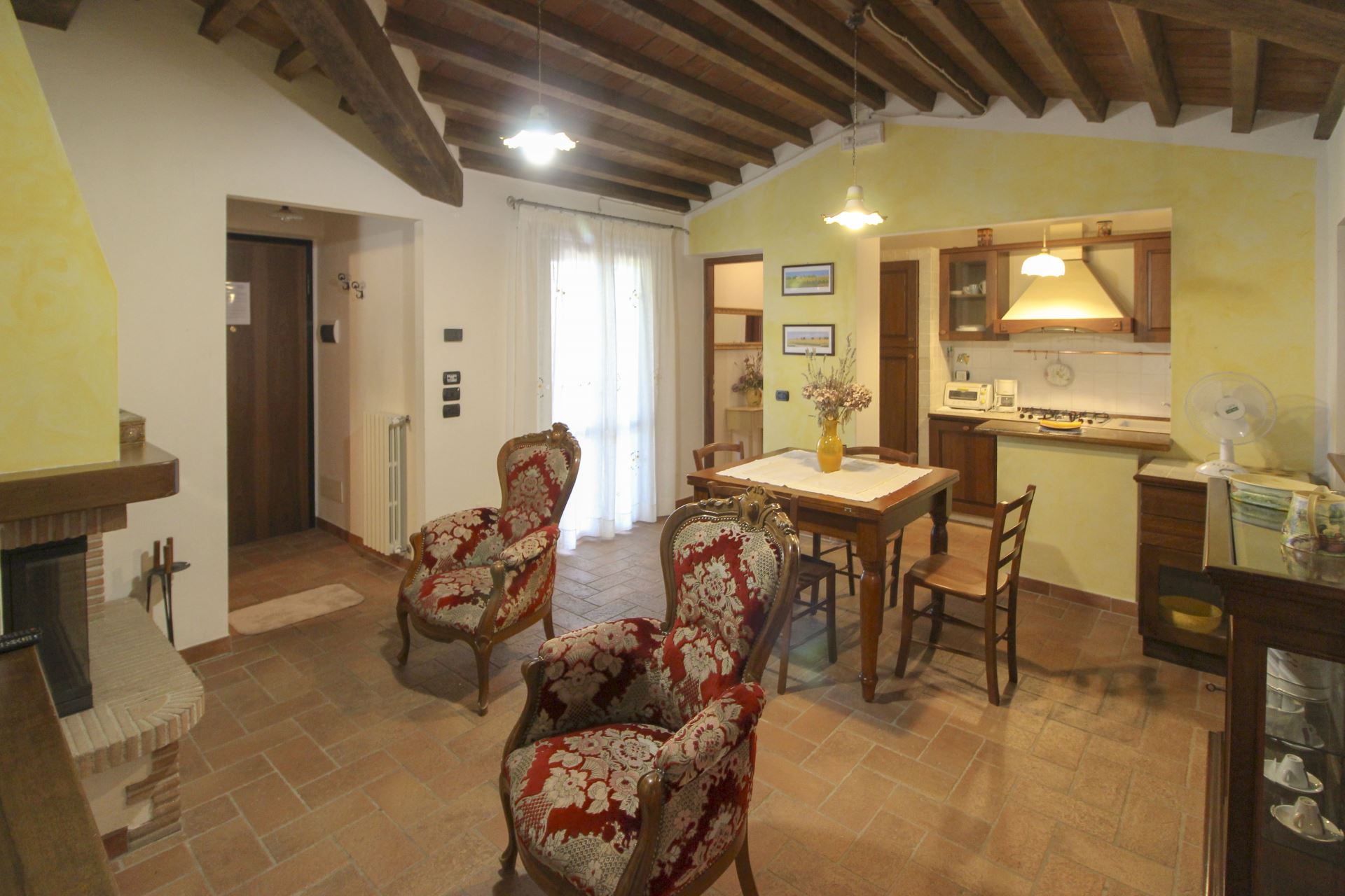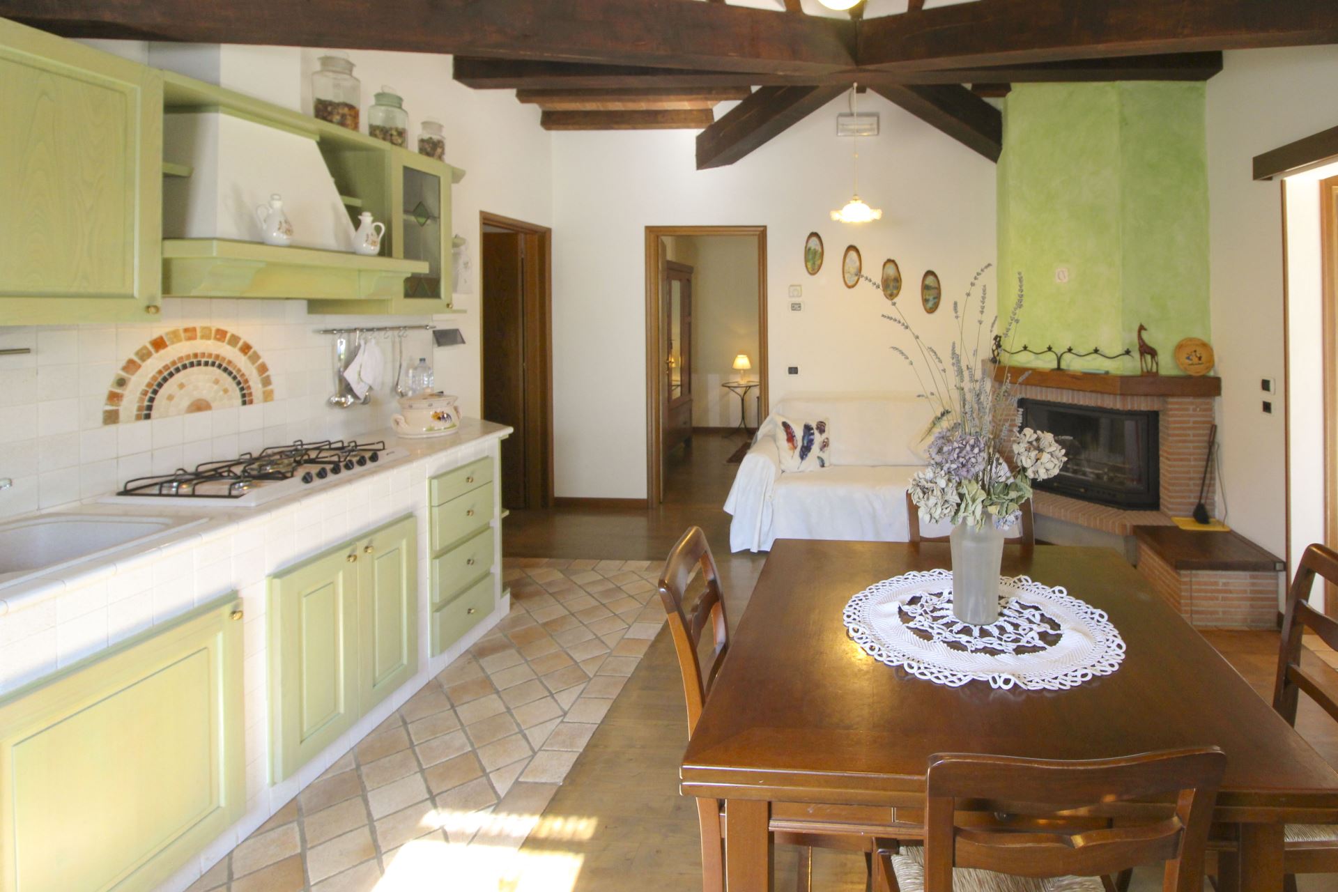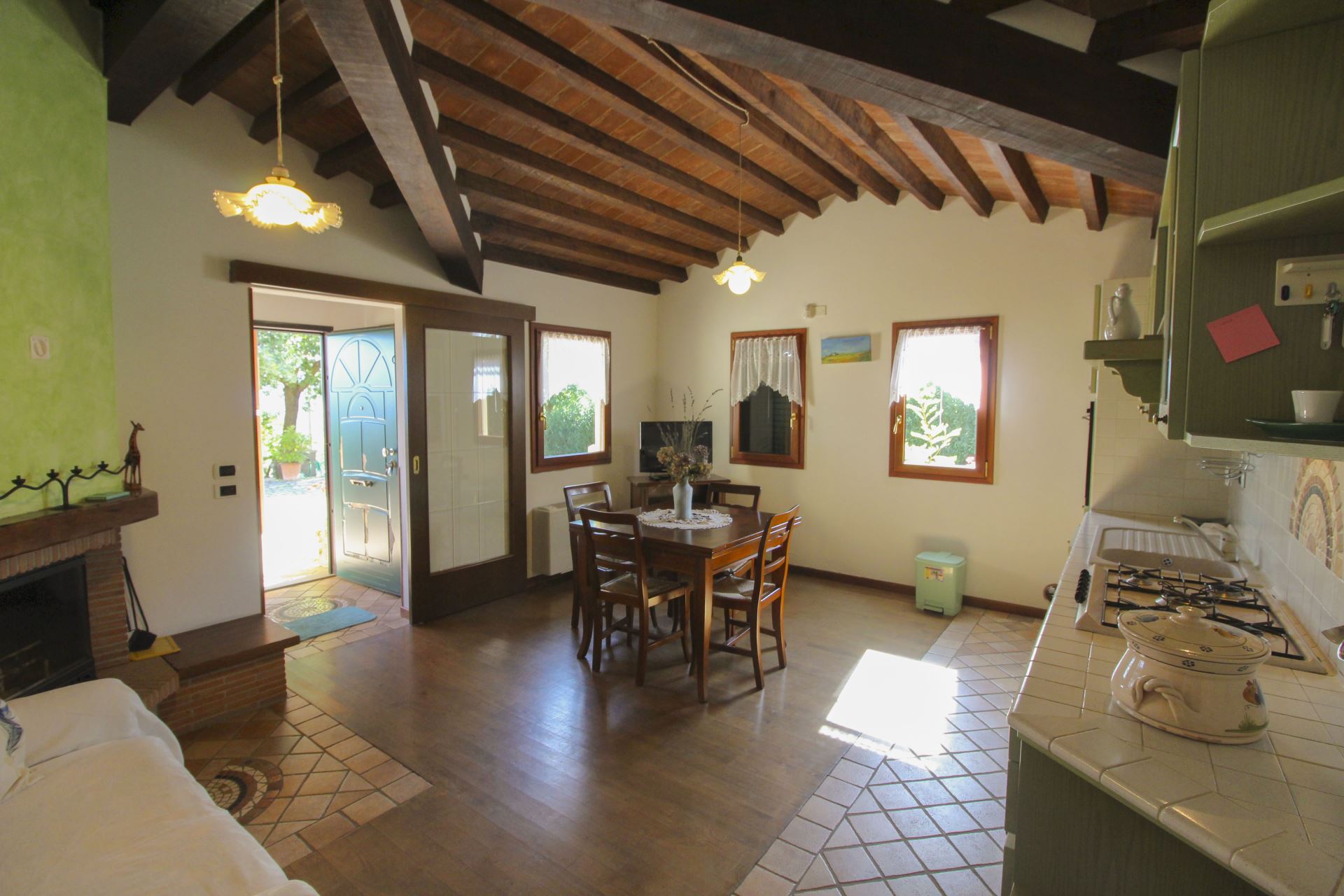 PIANO TERRA: ampio soggiorno-pranzo con camino, cucina, bagno con doccia, salotto con camino, ed angolo cottura, camera matrimoniale, camera con due letti singoli e bagno con doccia accessibile con sedia a rotelle (tranne la doccia). Con accesso indipendente al piano terra si trovano anche soggiorno-pranzo con angolo cottura, divano letto singolo e camino, camera matrimoniale, camera con due letti singoli e bagno con doccia.