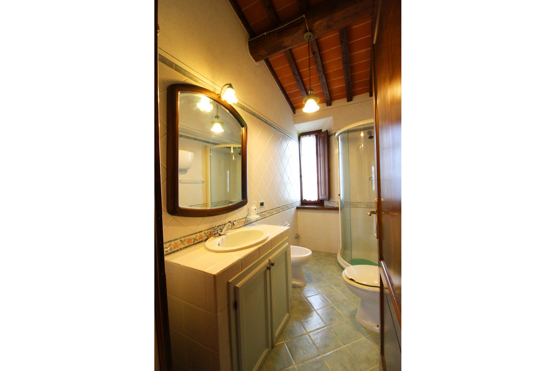 PIANO PRIMO: con accesso da scala esterna in pietra e loggetta panoramica. Ampio soggiorno con camino, quattro camere matrimoniali, una camera con letto matrimoniale e poltrona letto singola, due bagni con doccia.