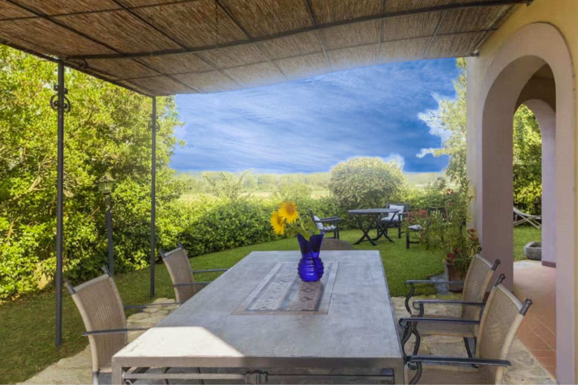 Trovate Villa Poggio Vaccaio in aperta campagna, a pochi chilometri da Chiusi e Castiglione del Lago, su un poggio panoramico con splendida vista sul Lago di Montepulciano. La villa è situata al confine tra Umbria e Toscana, in un contesto tranquillo e immerso nella natura.