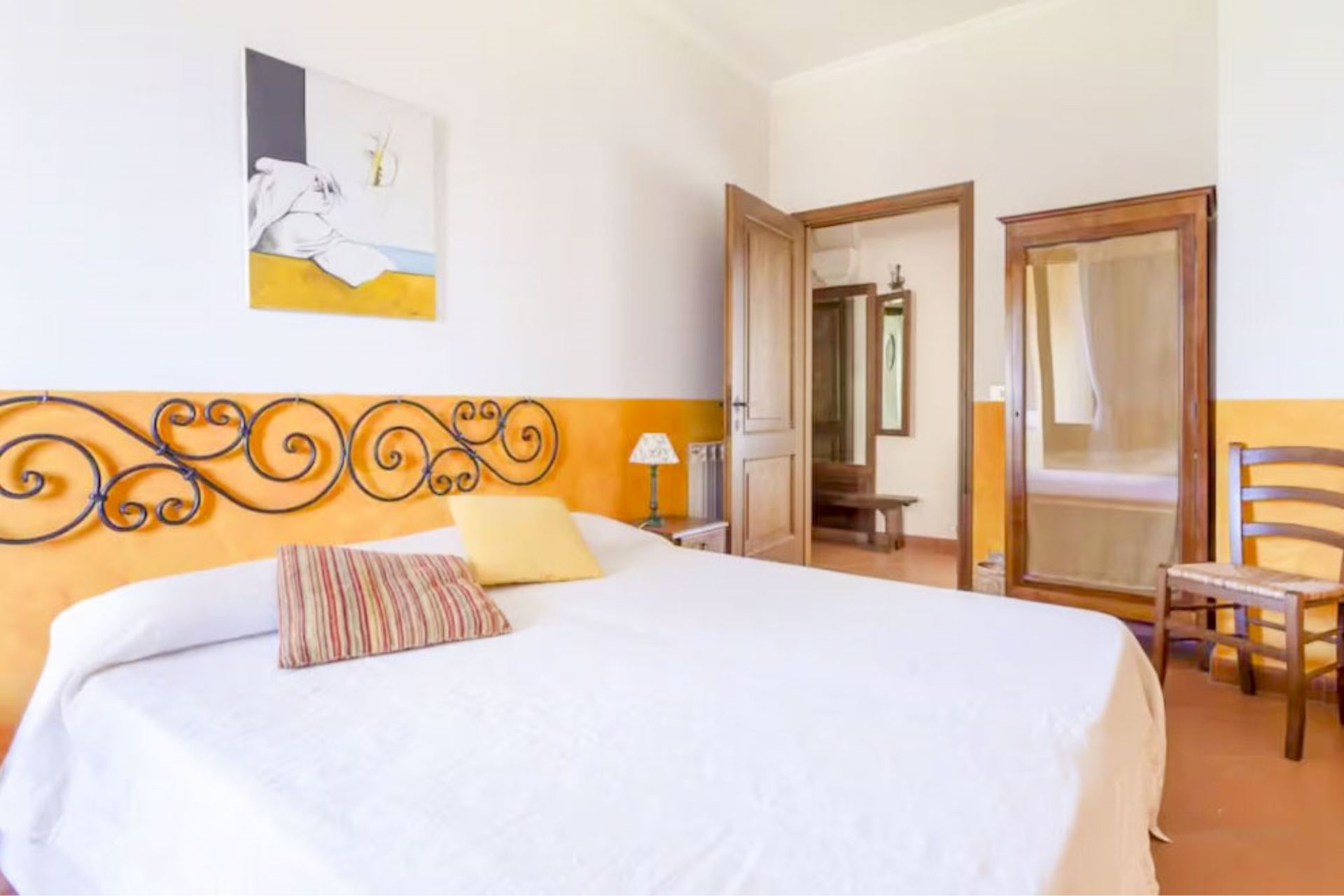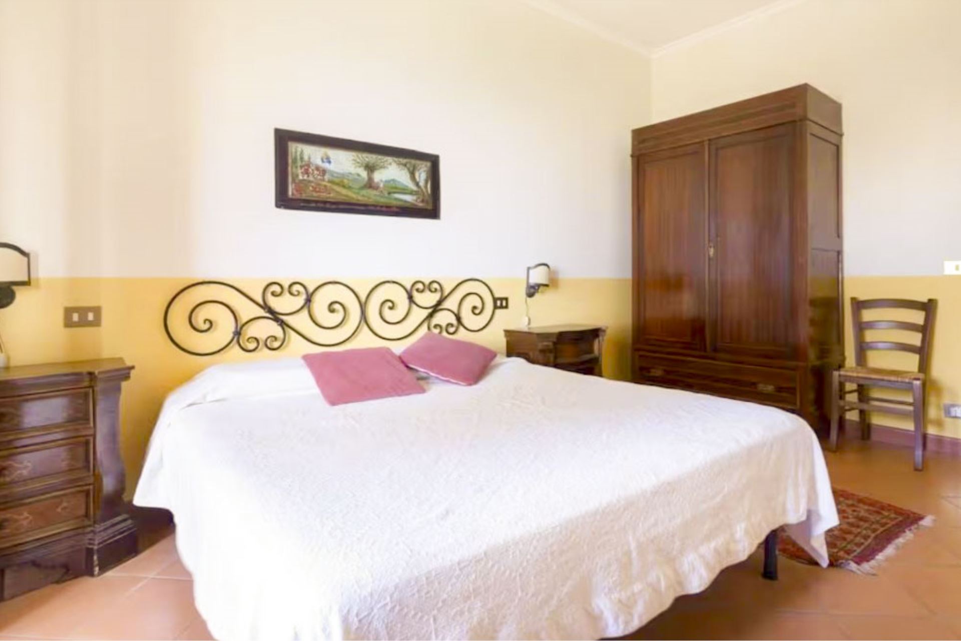 La villa è una tipica casa di campagna, arredata con mobili rustici che ne conservano il fascino autentico. Uno dei momenti più speciali della giornata è il tramonto: dalla piscina potrete ammirare colori spettacolari che si riflettono sul lago di Montepulciano, regalando panorami davvero indimenticabili e che renderanno l’atmosfera della vostra vacanza ancora più suggestiva.